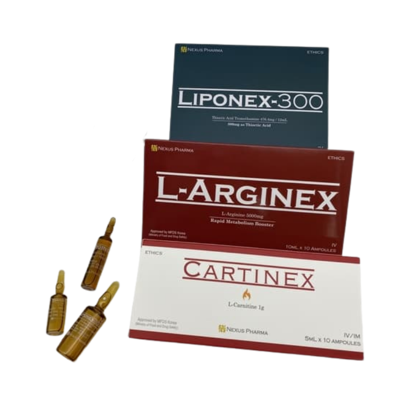 Liponex-300 (300mg/12mL x 10 ampollas): Fórmula lipotrópica que ayuda en la pérdida de peso, mejora el tono de la piel, reduce la inflamación y disminuye los niveles de azúcar en sangre.